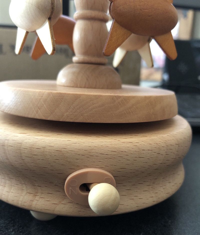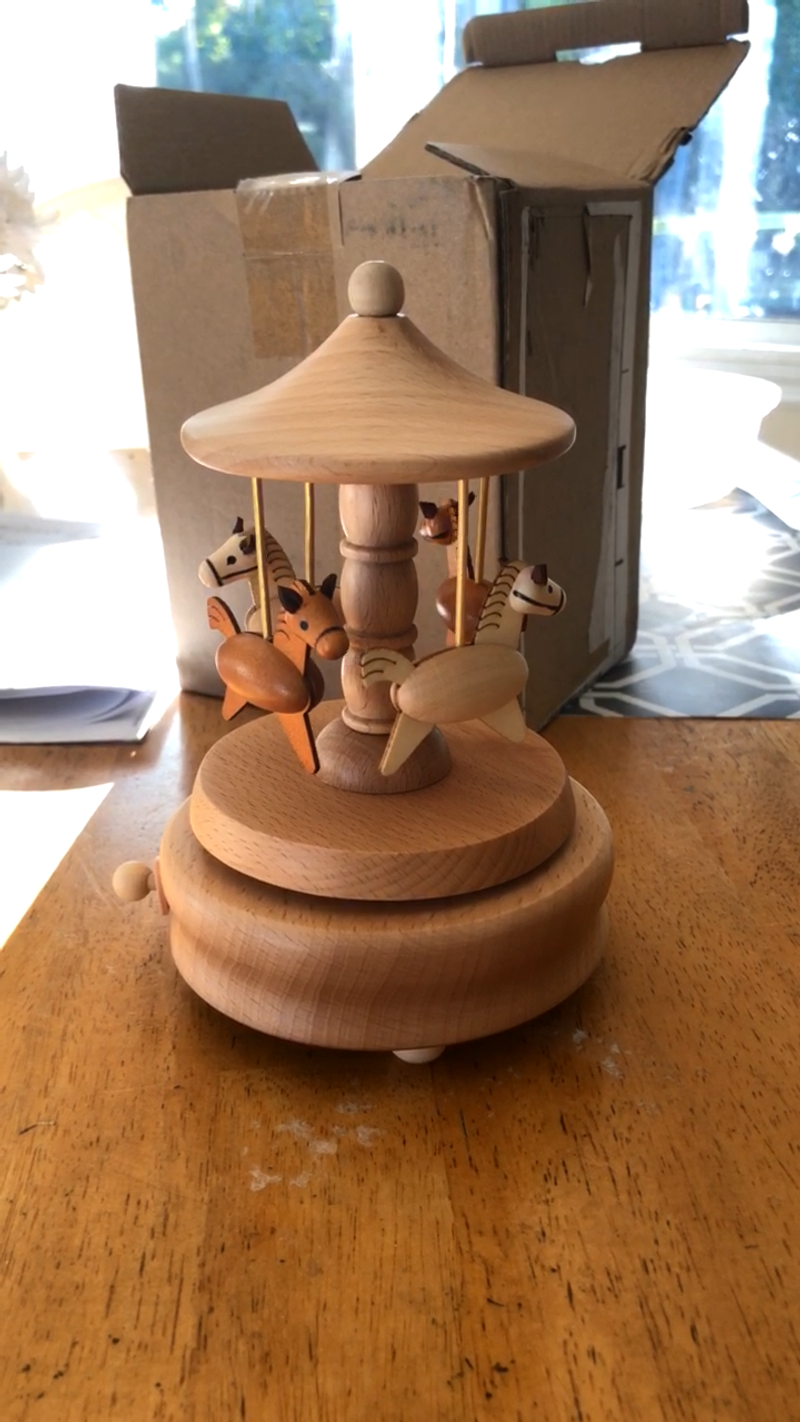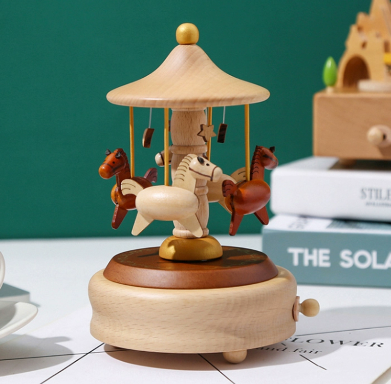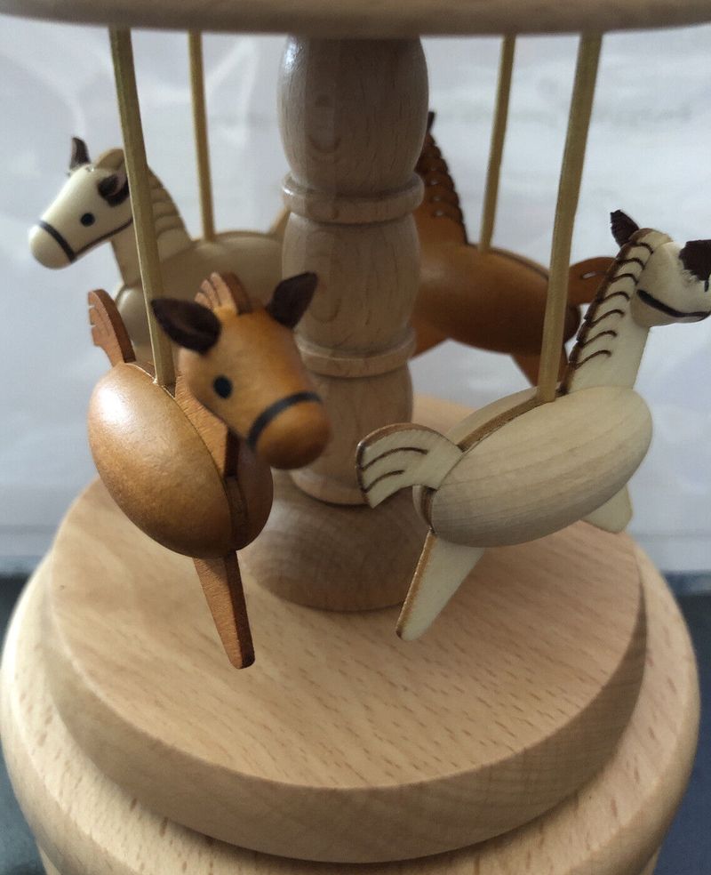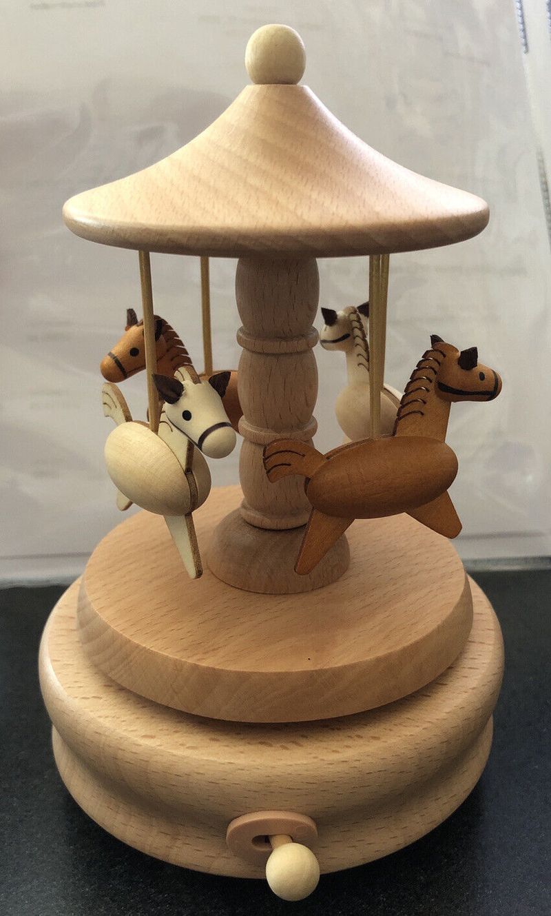 Carousel Music Box, Natural Beech Wood 4-Horse Carousel